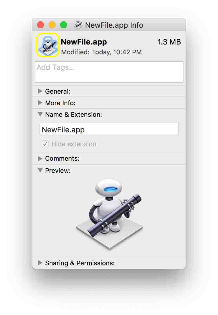 可以在这里下载图标,双击打开图标图片,⌘C 复制图标。选中NewFile.app,按 ⌘I 打开软件信息,点击左上角的图标,会有一圈蓝色光圈,然后按 ⌘V 粘贴图标,图标修改完成。