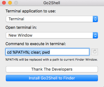 安装后打开,点击⌈Install Go2Shell to Finder⌋
