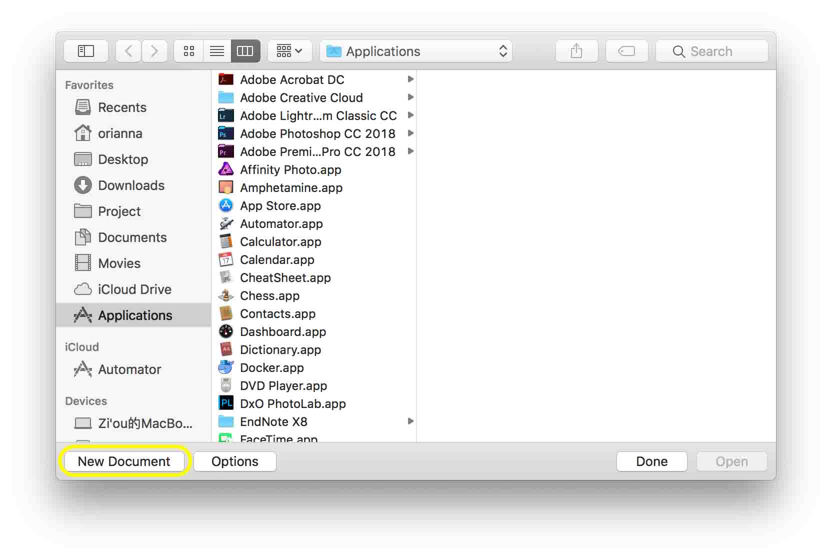 双击打开应用后选择⌈新建文档⌋。
