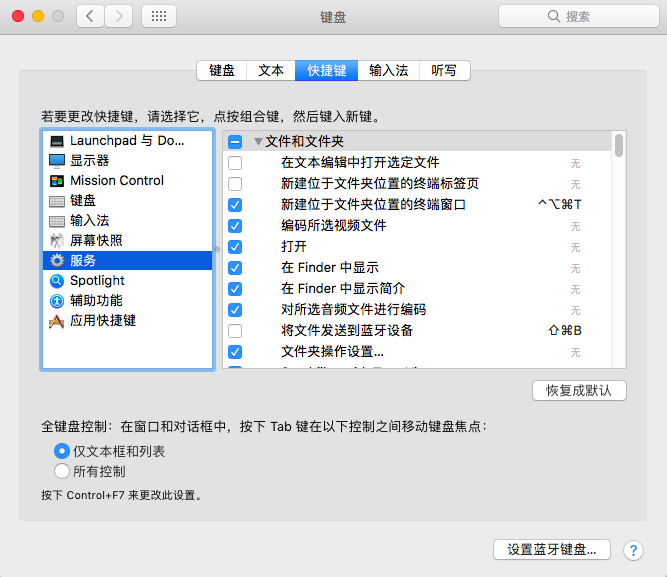 还可以设置快捷键,我设置了 ⌘⌥⌃T,选中文件夹后使用快捷键后即可快速打开终端。